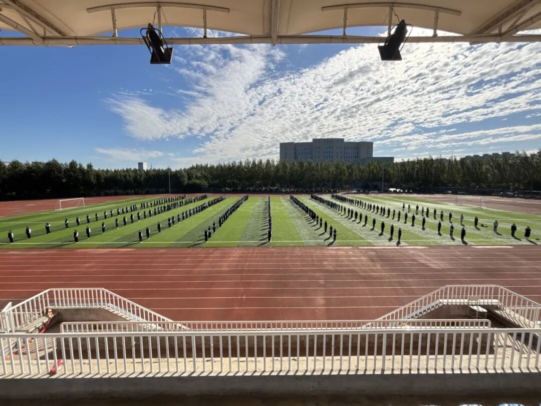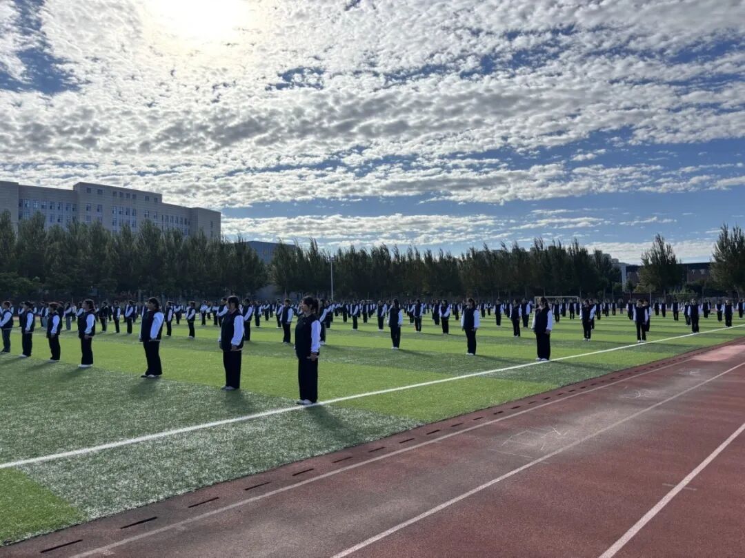 清晨,朝阳初升,同学们已在操场上整齐列队,精神抖擞地等待仪式开始。仪式伊始,国旗护卫队迈着铿锵有力的步伐,庄严出旗。在全体师生的注目下,五星红旗伴随着雄壮的国歌冉冉升起,全体师生肃立,行注目礼,整体氛围庄重而肃穆。