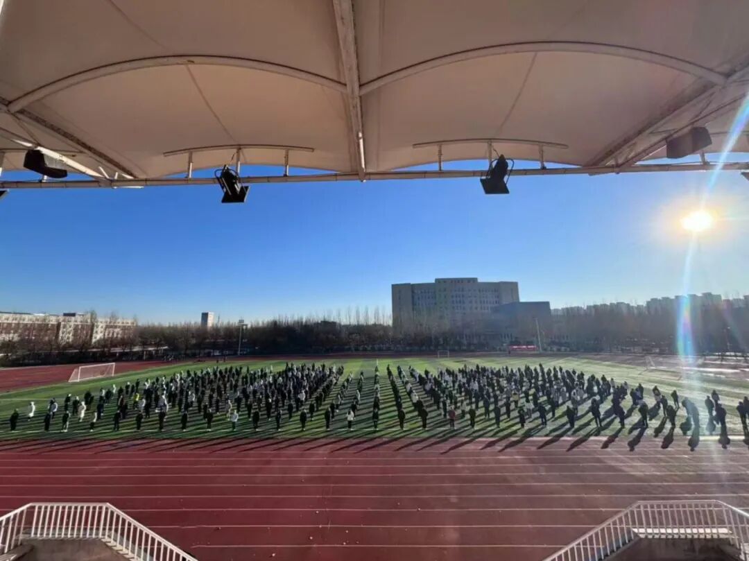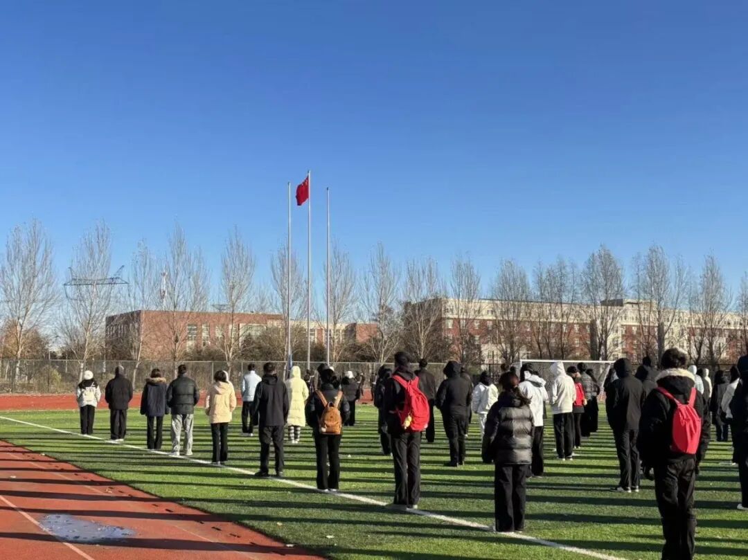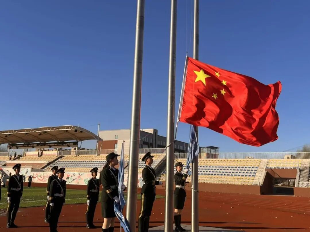 当清晨的第一缕阳光穿透云层,同学们早早地来到操场上,整齐地排列好方阵,等待仪式的开始。伴随着激昂的旋律,国旗护卫队迈着整齐矫健的步伐护送国旗入场。当五星红旗冉冉升起,全体师生肃立,齐声高唱国歌,赤诚之心与爱国情怀在晨光中交融,彰显着新时代师生的精神风貌。